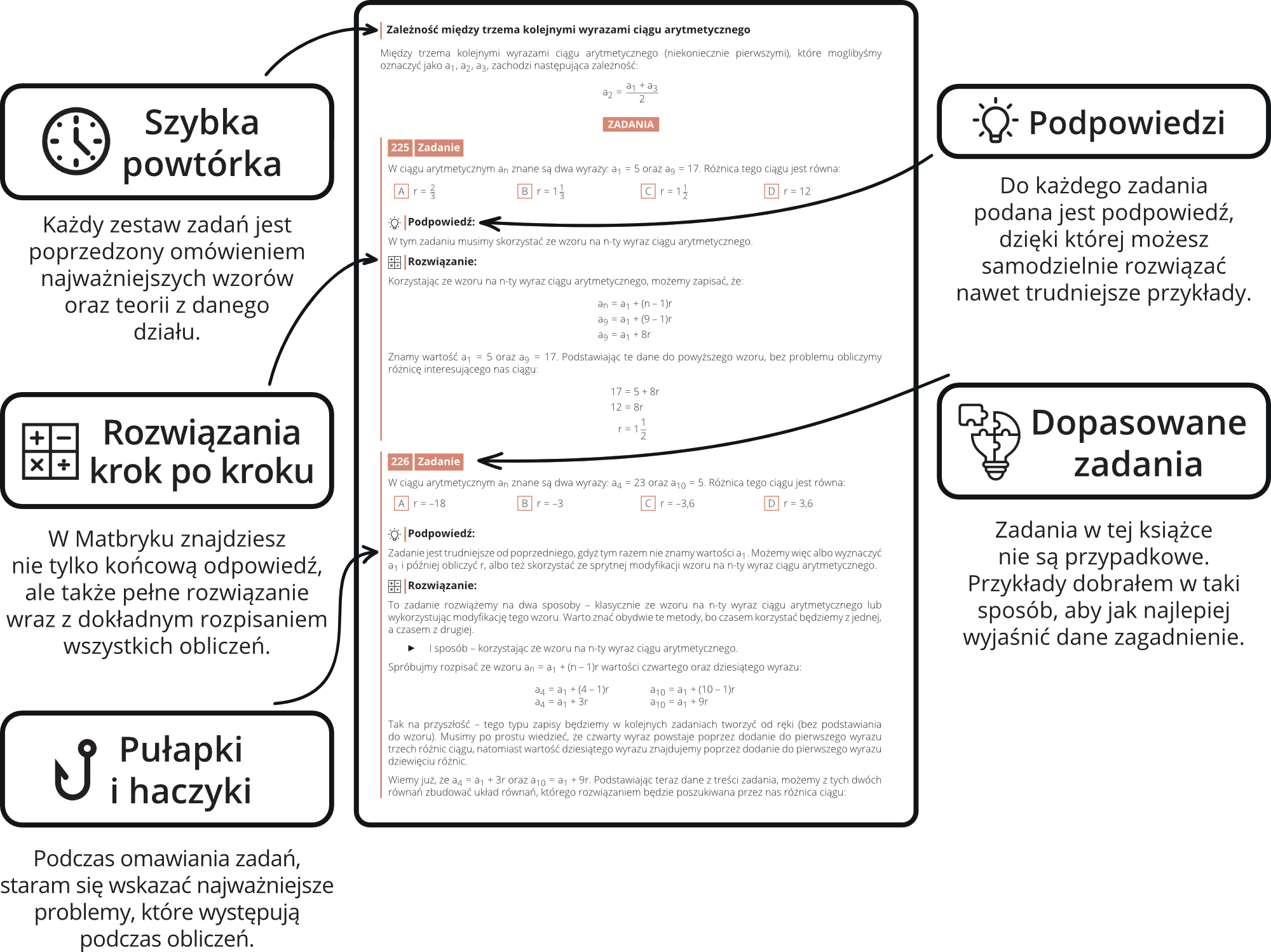 Dobrze, ale co sprawia, że ta książka jest wyjątkowa na tle innych? Teoretycznie można byłoby powiedzieć, że mniej więcej wszystkie repetytoria powinny być do siebie podobne, wszak matematyka jest jedna, więc trudno tutaj wymyślić cokolwiek nowego.